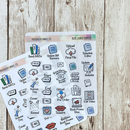 Our creative and focused planner stickers are designed to help authors stay organized and motivated during the exciting journey of launching a book. With stickers for tracking tasks like editing, cover design, marketing milestones, and launch dates, you'll stay on top of every detail. These vibrant, themed stickers not only make planning fun but also keep your goals front and center as you bring your book to life!