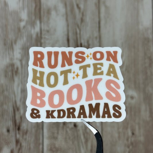 Runs on Hot TeaBooks and KDramas Vinyl Decal