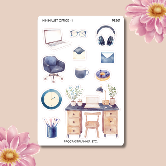 Minimalist Office Planner Stickers | Cozy Writing Space Illustration for Journals Planners